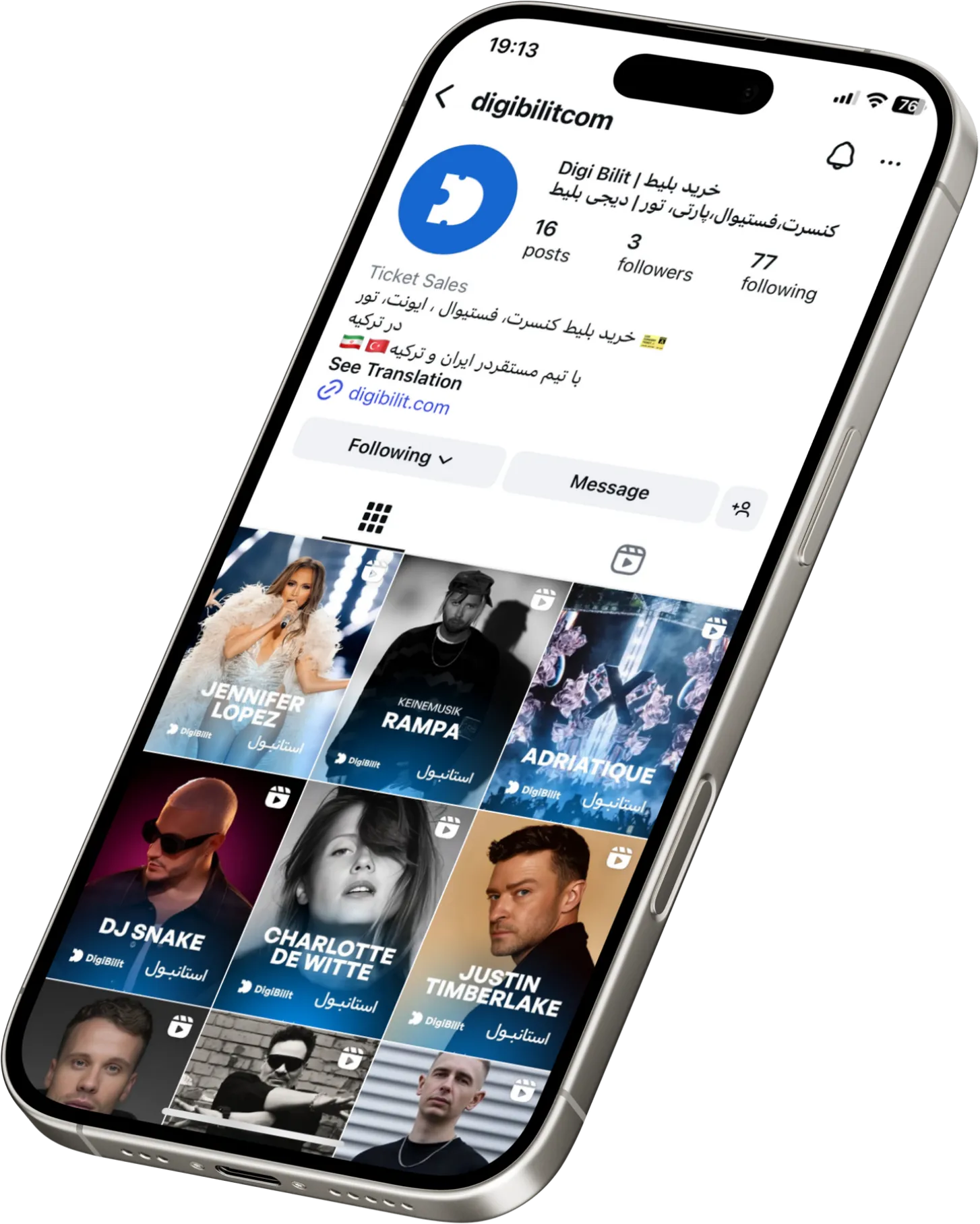 صفحه رسمی اینستاگرام دیجی بلیط، مرجع اطلاعرسانی سریع و دقیق درباره فستیوالها، کنسرتها و ایونتهای بینالمللی است.
